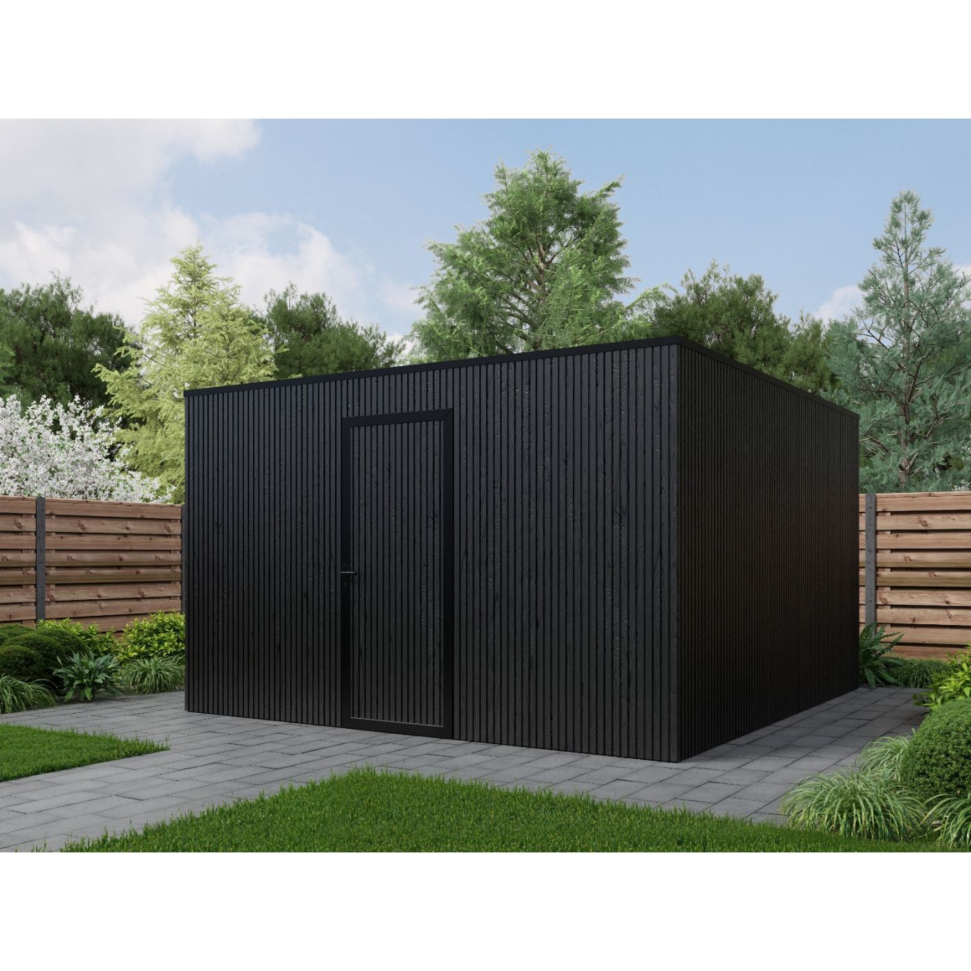 Deze Composiet schuur heeft een buitenwerkse maat van 400cm breed en 400cm diep.