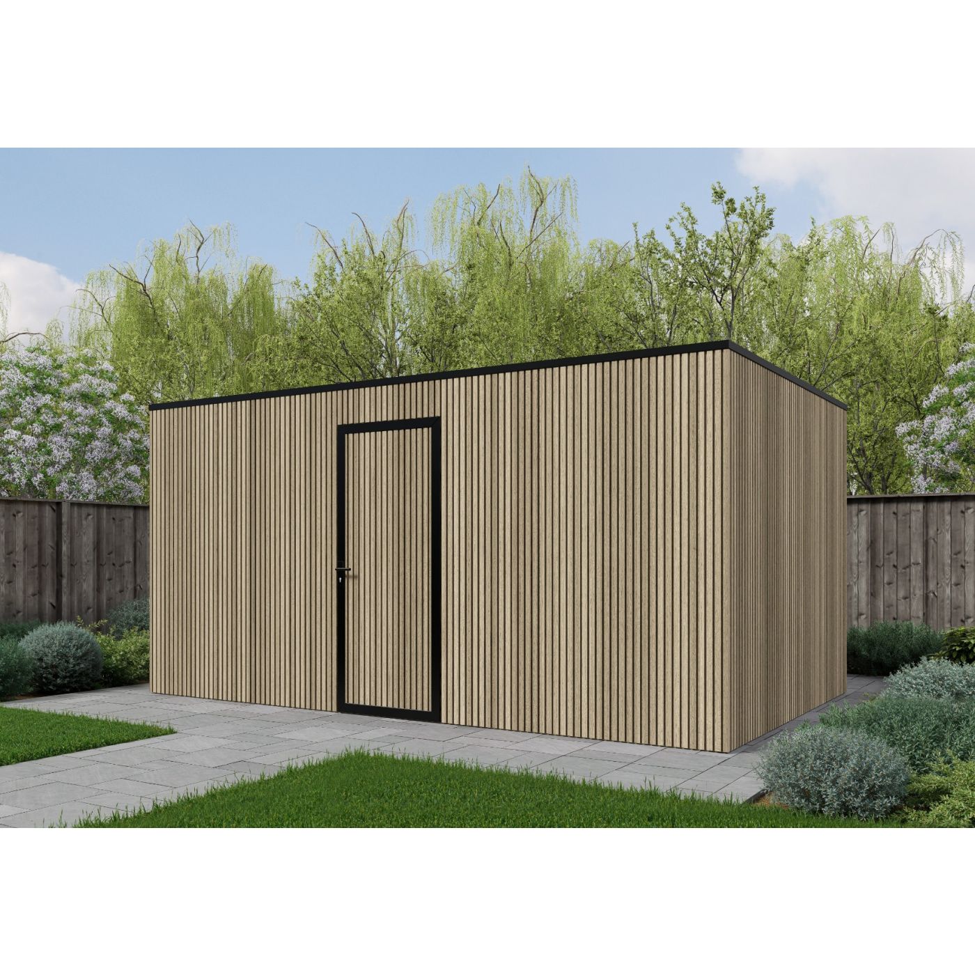 Deze Composiet schuur heeft een buitenwerkse maat van 500cm breed en 300cm diep.