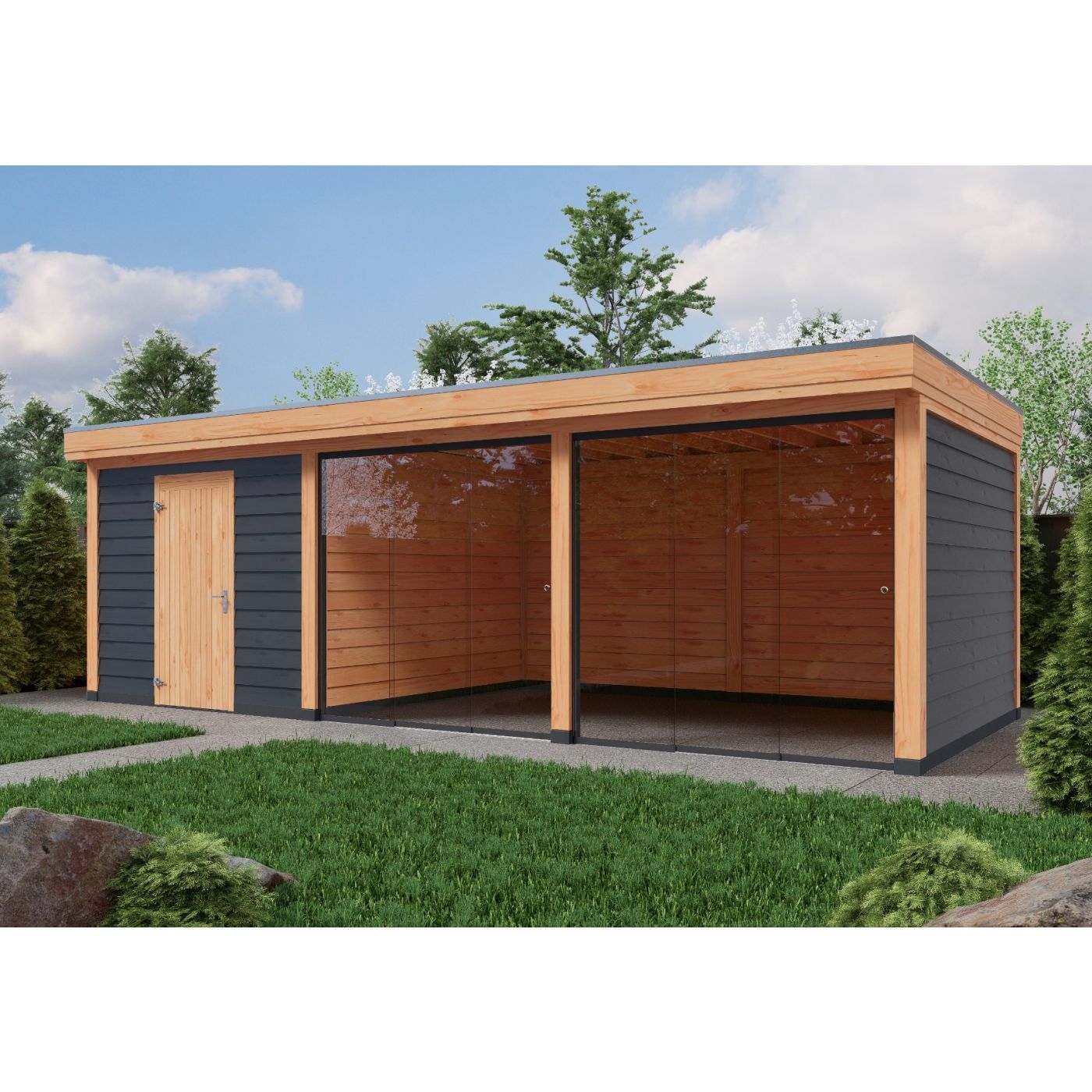 Als dakbeschot gebruiken wij douglas dak planken gladgeschaafd en wordt waterdicht afgewerkt met ons hoogwaardig Boscover EPDM en aluminium daktrim set.