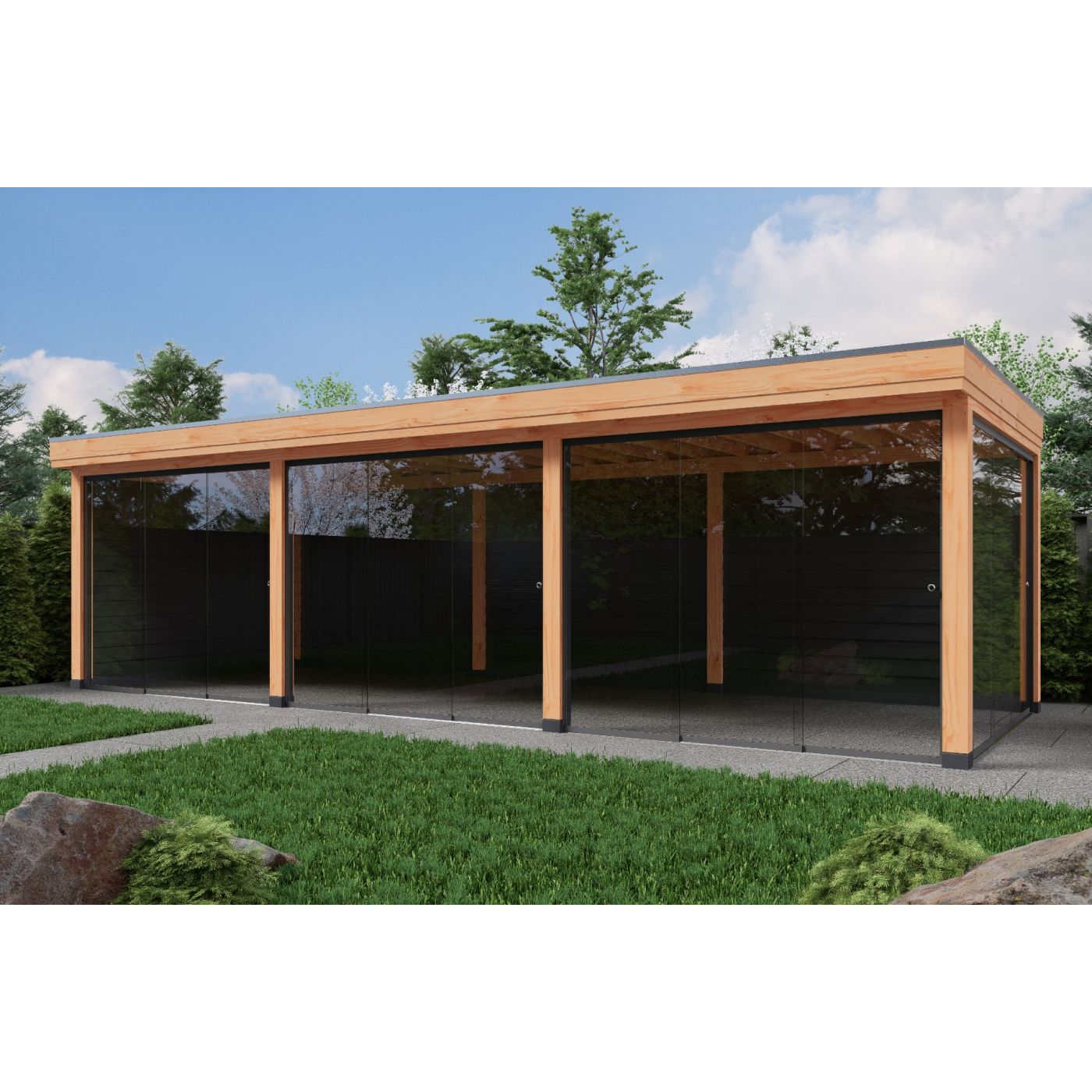 Als dakbeschot gebruiken wij douglas dak planken gladgeschaafd en wordt waterdicht afgewerkt met ons hoogwaardig Boscover Epdm en aluminium daktrim set.