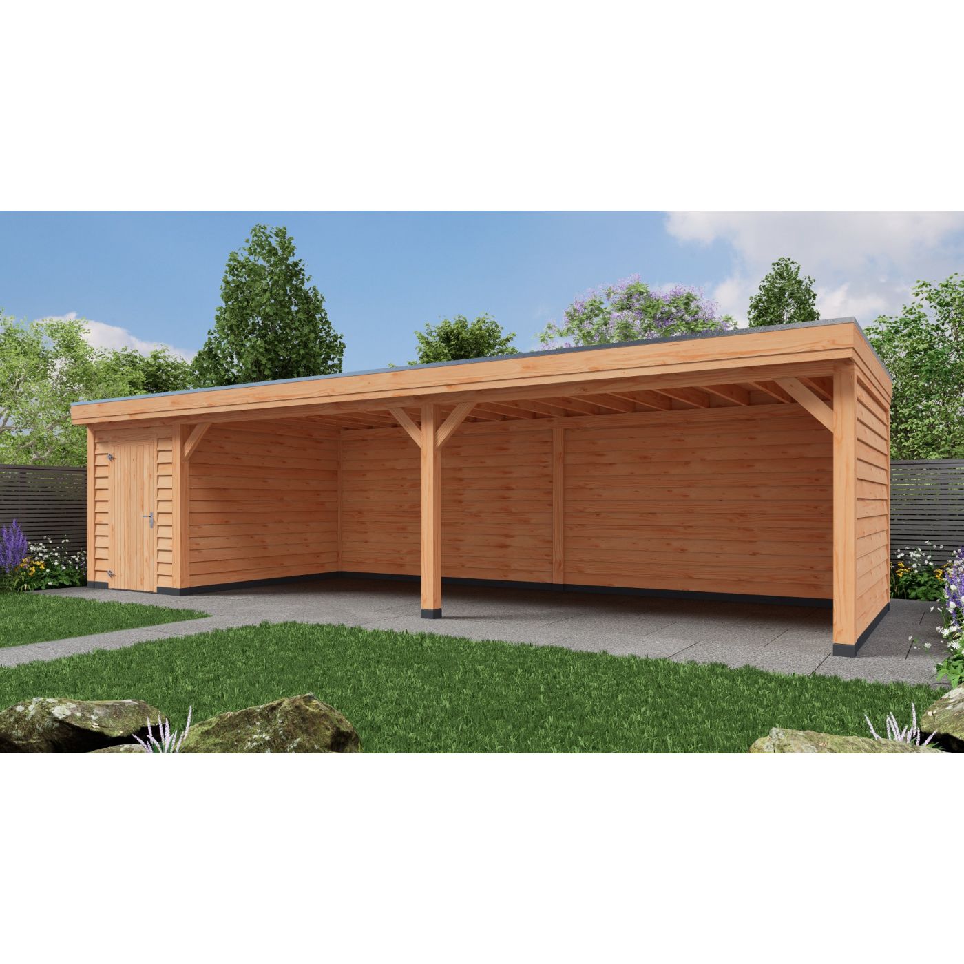 Als dakbeschot gebruiken wij douglas dak planken gladgeschaafd en wordt waterdicht afgewerkt met ons hoogwaardig Boscover EPDM en aluminium daktrim set.