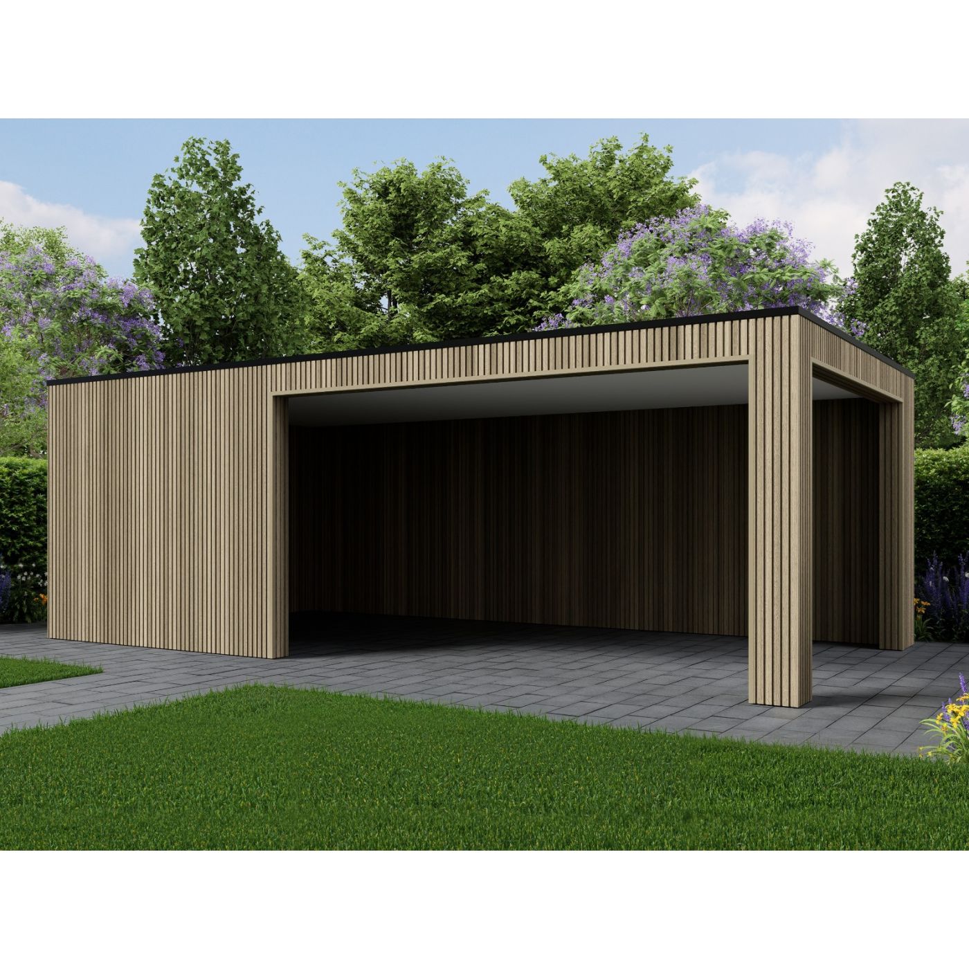 De wanden zijn afgewerkt met hoogwaardige onderhoudsvrije composiet wandbekleding.Composiet is kleurvast, rot niet, splintert niet en hoeft niet geschilderd of gebeitst te worden. Hierdoor behoudt de overkapping jarenlang zijn nette en moderne uitstraling zonder extra onderhoud.