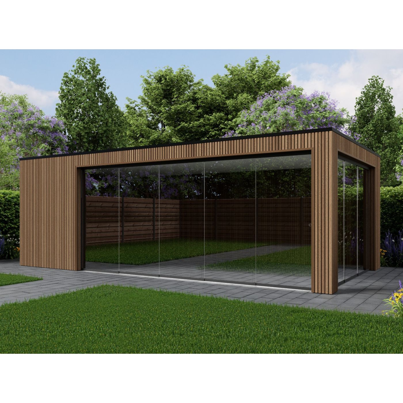 De wanden zijn afgewerkt met hoogwaardige onderhoudsvrije composiet wandbekleding.Composiet is kleurvast, rot niet, splintert niet en hoeft niet geschilderd of gebeitst te worden. Hierdoor behoudt de overkapping jarenlang zijn nette en moderne uitstraling zonder extra onderhoud.