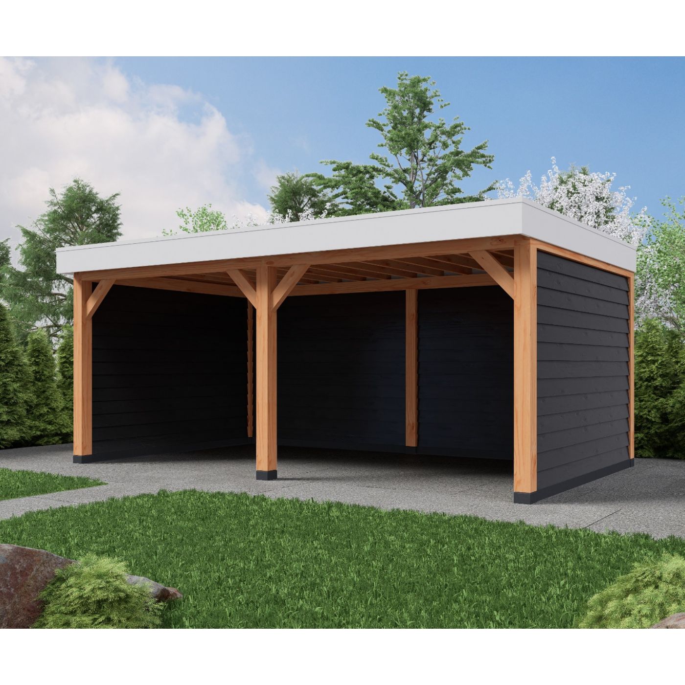 Als dakbeschot gebruiken wij douglas dak planken gladgeschaafd en wordt waterdicht afgewerkt met ons hoogwaardig Boscover EPDM en aluminium daktrim set.