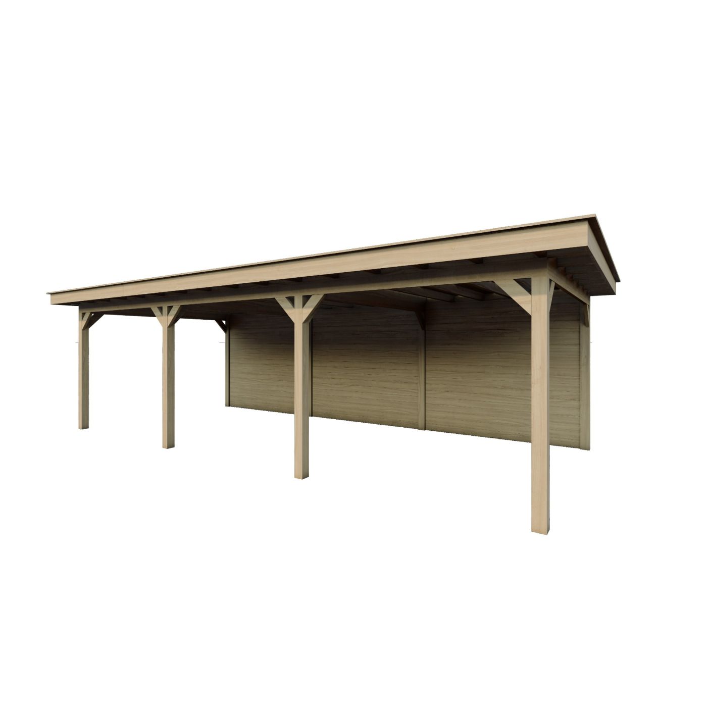 Als dakbeschot gebruiken wij grenen dak planken gladgeschaafd en wordt waterdicht afgewerkt met ons hoogwaardig Boscover Epdm en houten daktrim set.