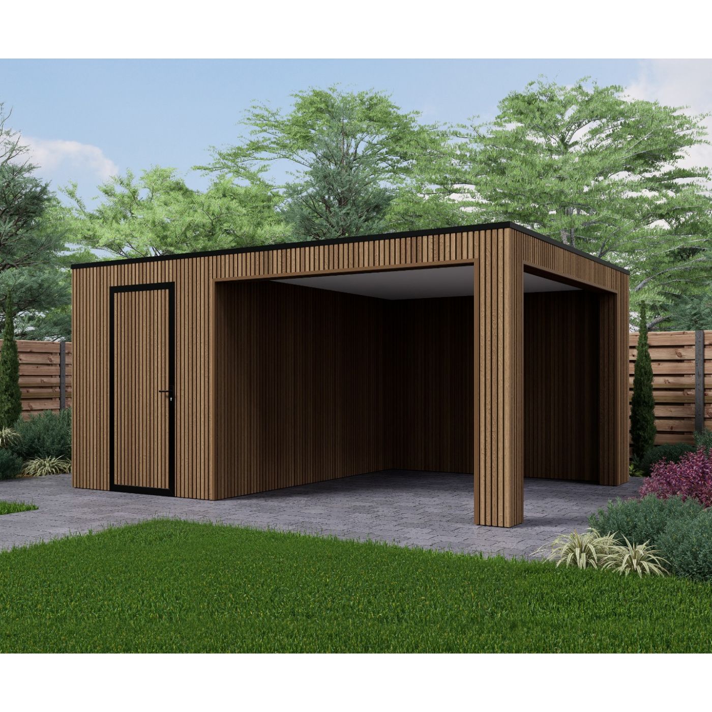 Tuinhuis Composiet Rhombus Teak 500cm x 370cm met schuur 200cm
