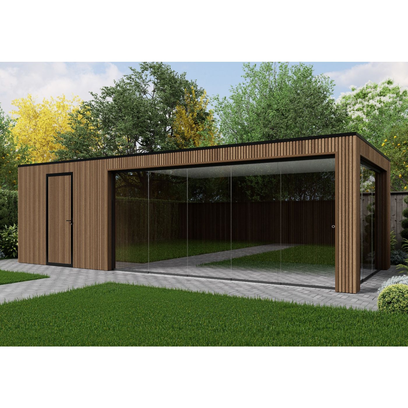Tuinhuis Composiet Rhombus Teak 800cm x 330cm met schuur 300cm